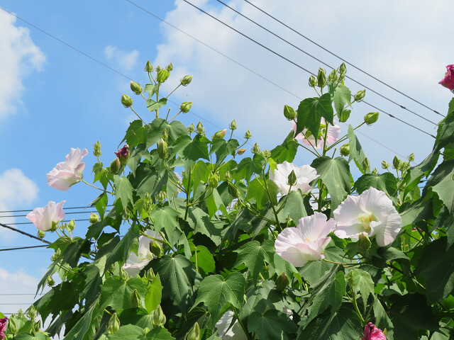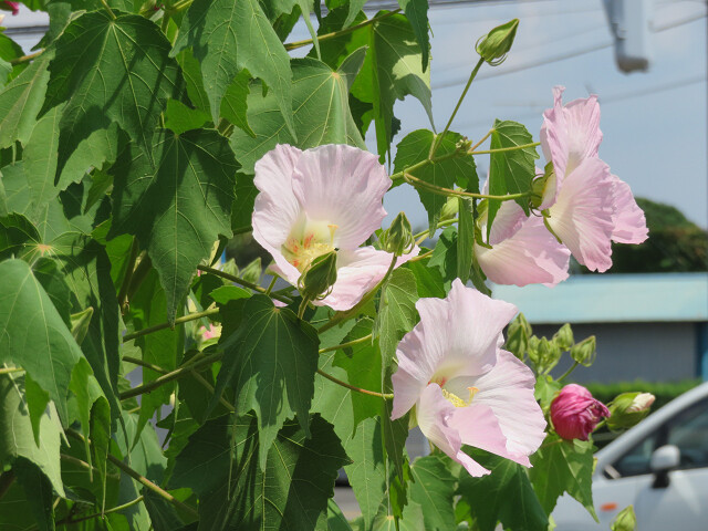 2020年08月30日 酔芙蓉(ピンク)とニワフジ ご訪問いただきまして、ありがとうございます。昨日の記事に続いて、ピンク色になった酔芙蓉です。(11時半撮影)なるべく、電線が入らないように頑張ったんですけど~同じ木なのですが、違う日に写しました。同じ花の変化が写せたらよかったんですけどね。近くで咲いていたニワフジ。 二度めの開花です。 タグ :#酔芙蓉#ニワフジ