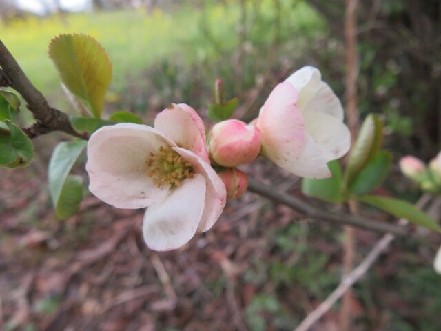 2024年03月24日 更紗ボケと菜の花 ご訪問いただきまして、ありがとうございます。 ちょっと行った所で咲いていた更紗ボケです。 (3月20日撮影)こんな実が生るんですね。子供がたくさんできていました。菜の花が咲いていました~今シーズンは、枝垂れ桜の開花が遅れています。でも、色々と咲き出して忙しいですね。ミルクのその後ですが、うそみたいに元気で食欲旺盛です。誤診だったらいいと思うのですが、細かく検査しました。ご心配をおかけしまして申し訳ありません。では、元気に、また日曜日にお邪魔いたします。※コメ欄は閉じさせていただきました。 タグ :#更紗ボケ#菜の花#花